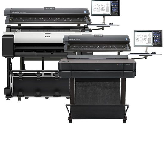 ※ 写真はSCi36c-MFPとキヤノン製プリンタ(TM-300)、SCi25c-MFPとHP社製プリンタ(DesignJet T650)との組み合わせです。
