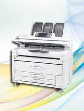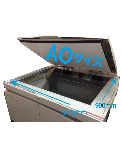 一般的な大判カラーコピー機は、シートスルー方式で原稿をローラーに挟み込んでガラスの上を擦りながらコピーします、この方式では原稿を傷める可能性が高く当社ではお勧めしていません。当社ではフラットベットコピー機を使用しています、この方式はガラスの上に原稿を乗せて読み取るため原稿が動かず擦れる心配がありません、一般オフィスで複合機の上に原稿を乗せる方法同じです。
